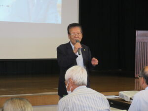 牧 県老連会長のあいさつのあと、研修が始まりました。