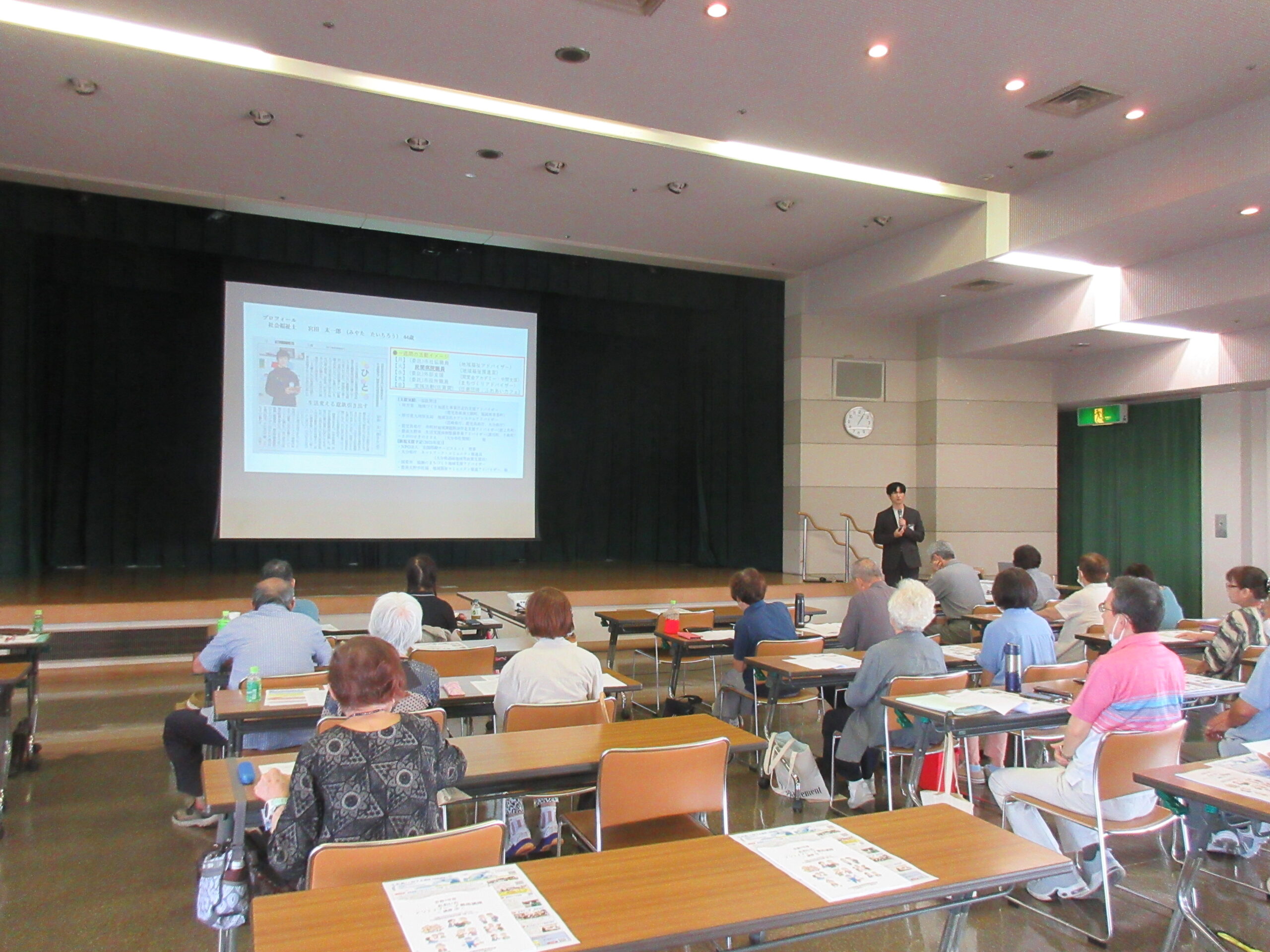 1つめの講義は「さがのせきのささえの取り組み紹介~地域づくりは“聴く力”と“応援”から~」と題して、社会医療法人関愛会地域福祉推進室長の宮田太一郎さんからご講演いただきました。