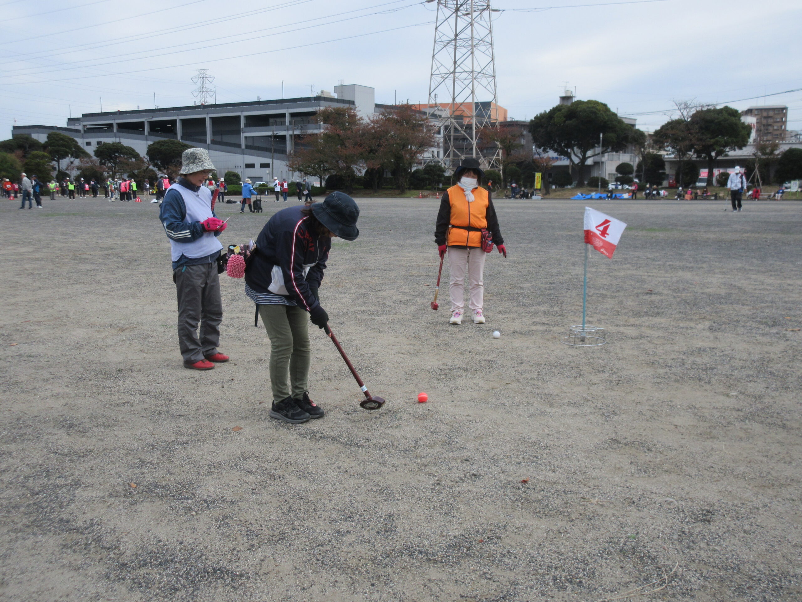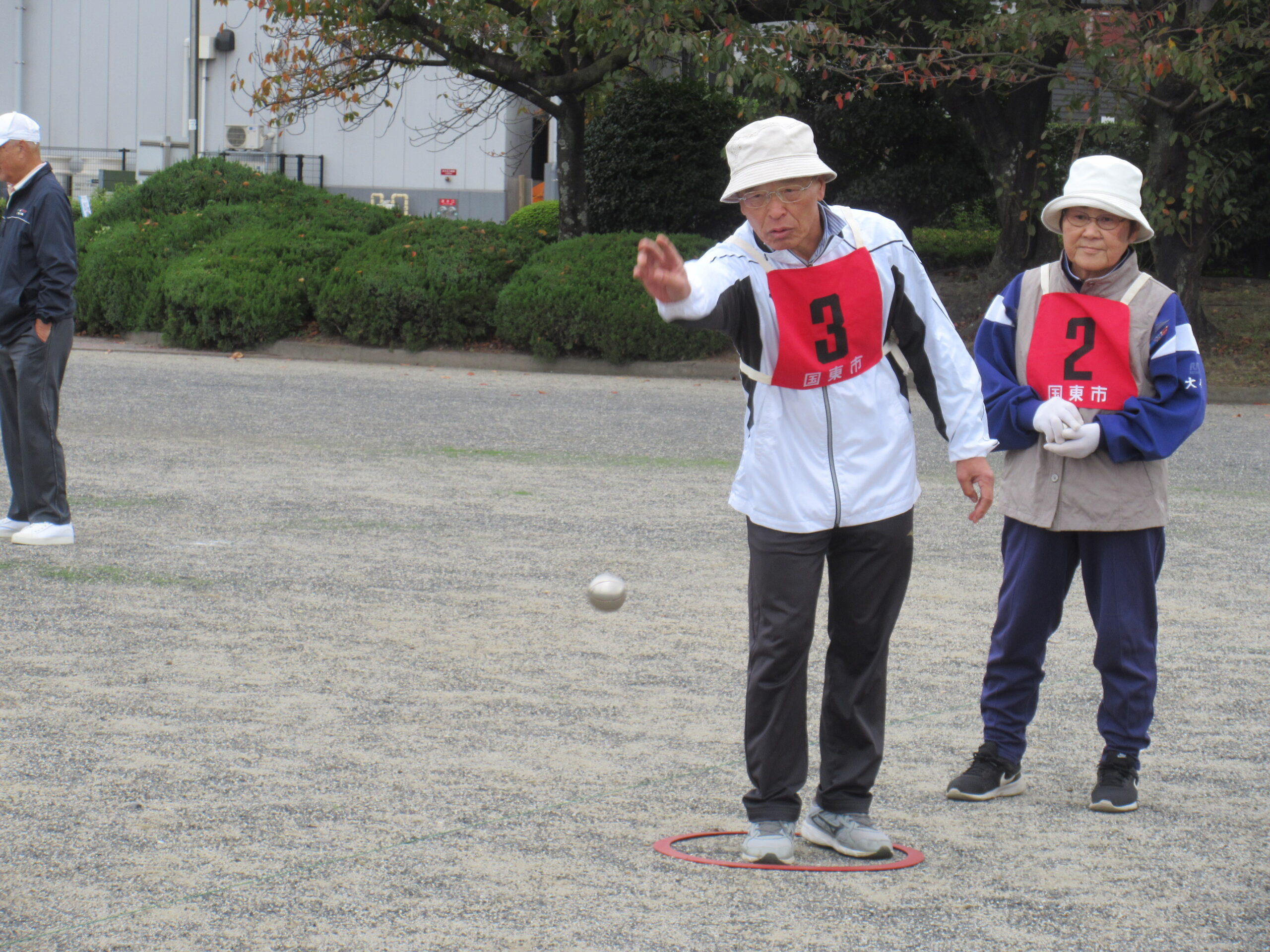 多少肌寒い気温ではありましたが、17市町から約350人が参加して、ゲートボール、グラウンド・ゴルフ、ペタンクの3競技に日頃の練習成果を発揮して、真剣に楽しく取り組んでいました。