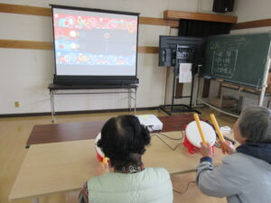 令和8年2月27日(金)、国東市国東町旭日地区公民館で里づくり旭日ネットワーク協議会が開催するミニデイにおじゃましました。「めじろん体操」と「ご当地体操 いきいきちょるちょる体操」から始まります。